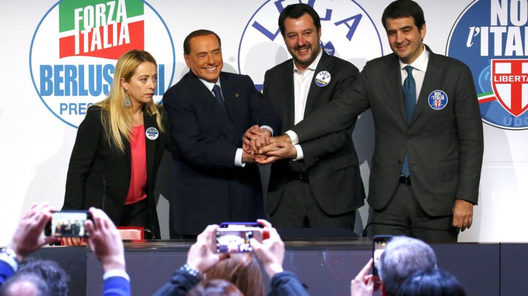 Η συμμαχία που έχουν συγκροτήσει το κόμμα Φόρτσα Ιτάλια («Εμπρός Ιταλία») του Σίλβιο Μπερλουσκόνι, η Λέγκα και το μικρό εθνικιστικό κόμμα Αδέλφια της Ιταλίας (Fratelli d'Italia) συγκεντρώνεισχεδόν το 35% των ψήφων, σύμφωνα με τις στατιστικές προβολές που μεταδίδουν ιταλικά τηλεοπτικά δίκτυα.