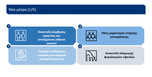 Παράλληλα, θα ενισχυθούν οι εποχιακά απασχολούμενοι, ενώ θα ισχύσει η επιστρεπτέα προκαταβολή και η μείωση προκαταβολής φόρου.