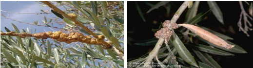 Το βακτήριο προκαλεί την εμφάνιση χαρακτηριστικών όγκων κυρίως σε κλαδίσκους, σε κλάδους, στον κορμό και τις ρίζες των ελαιόδεντρων.